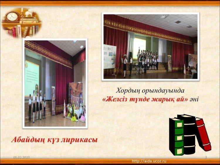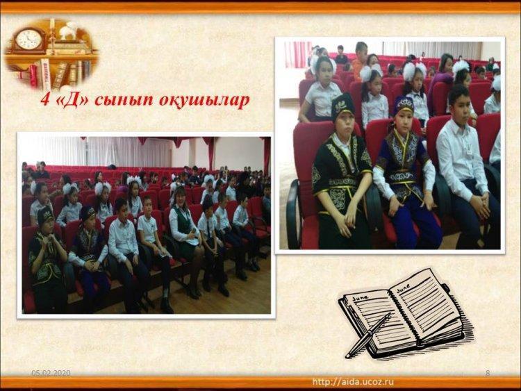 Абай Құнанбаевтың 175 жылдығына орай 4 "Д" сыныбында өткен "Абайды оқы, таңырқа" атты кеш