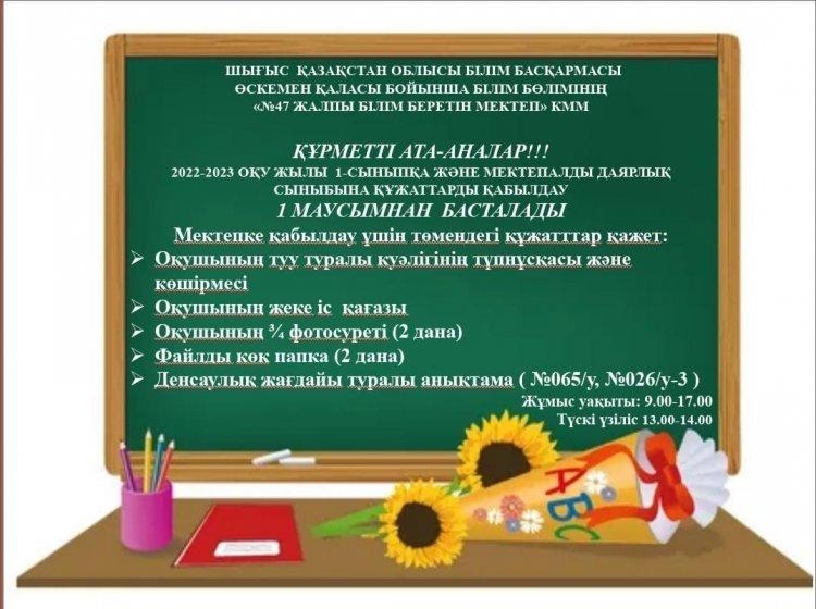 Хабарландыру !!! » Шығыс Қазақстан облысы білім басқармасы Өскемен қаласы бойынша білім бөлімінің «№47 жалпы білім беретін мектеп» коммуналдық мемлекеттік мекемесі