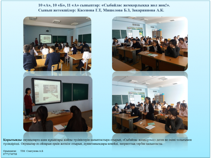 "Сыбайлас жемқорлыққа жол жоқ" атты сынып сағаттары