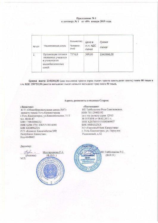 Договор "Питание учащихся на 1 квартал 2019года" » Шығыс Қазақстан облысы білім басқармасы Өскемен қаласы бойынша білім бөлімінің «№47 жалпы білім беретін мектеп» коммуналдық мемлекеттік мекемесі